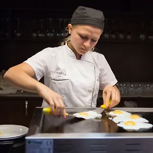 Бюфет-закуска се предлага на гостите в ресторанта. Барът на басейна на място разполага със собствени удобства като маса за билярд, музика на живо пиано.