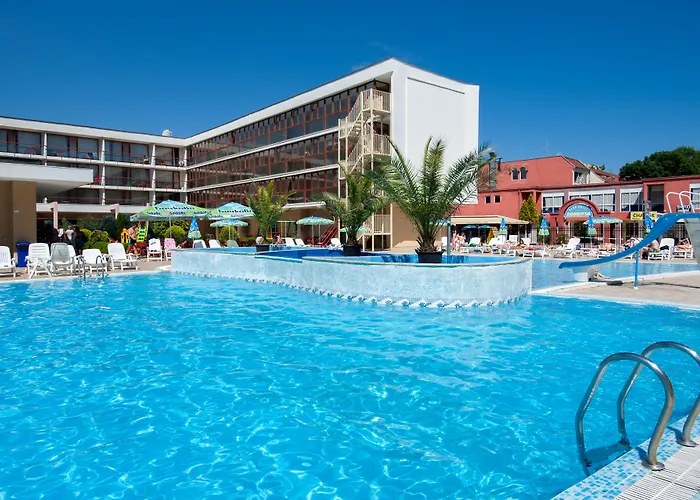 Quest'albergo a 4 stelle, Aqua Nevis Hotel & Aqua Park Sunny Beach, si trova a circa 1 km dalla spiaggia Sunny Beach e offre una piscina esterna in loco. I vantaggi di quest'albergo includono il Wi-Fi in tutta la proprietà.